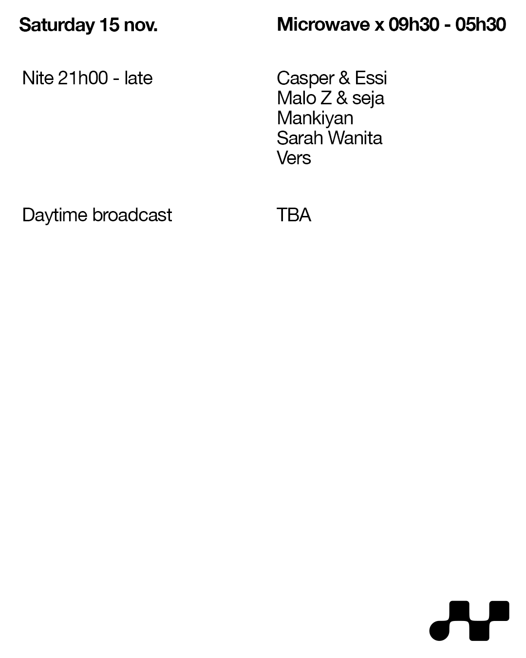 DJ sets by Sarah Abd Ali and microwave resident Seja